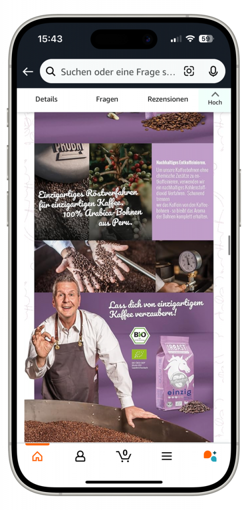 Amazon ist nicht nur als isolierter Vertriebskanal zu betrachten. Als größter Marktplatz der Welt dient er Marken als digitales Schaufenster für ihre Produkte, an dem viele Kunden ihre ersten Berührungspunkte haben. Eine konsistente Gestaltung sorgt für eine klare Markenidentität, erhöht die Wiedererkennbarkeit, steigert das Markenerlebnis und stärkt das Vertrauen potenzieller Kunden, was zu reduzierten Kaufhürden & gesteigerter Glaubwürdigkeit führt, wovon Marken über ihre Amazon-Präsenz hinaus profitieren.